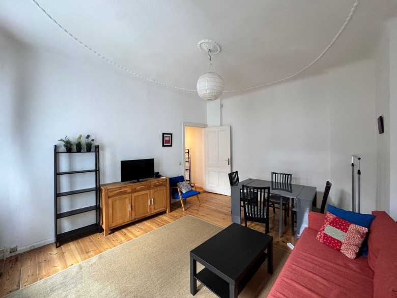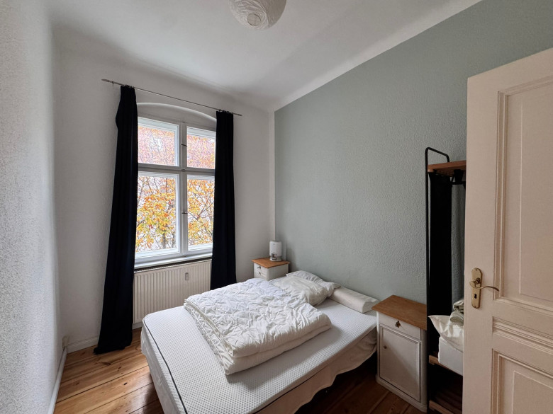 Lovely furnished two-room apartment in Prenzlauer Berg. The unit is divided in a kitchen with a small laundry, a tiled bathroom with a shower cabin, a comfortable bedroom and a bright living room. The windows are facing the internal courtyard, isolating the apartment from the noise of the street. The apartment is located on the fourth floor, therefore all the rooms catch a lot of sunlight. A nice wooden parquet and practical equipment make the apartment cozy to live in.