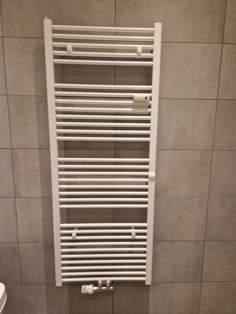 The interior bathroom has a bathtub, underfloor heating and an additional towel heater.