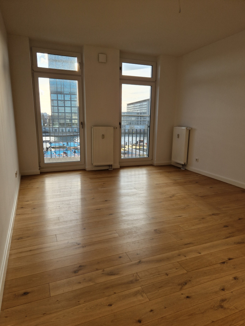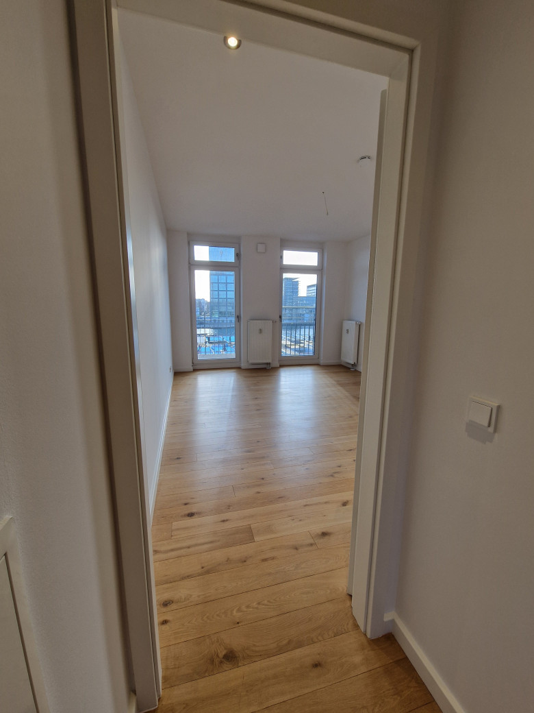 The building is located right on the River Spree, not so far from the world-famous East Side Gallery in the popular Friedrichshain district and offers stunning views over the city. Once the area where the Berlin Wall moved along, now more and more the attraction of many famous bars and clubs, many of them located directly on the banks of the Spree.