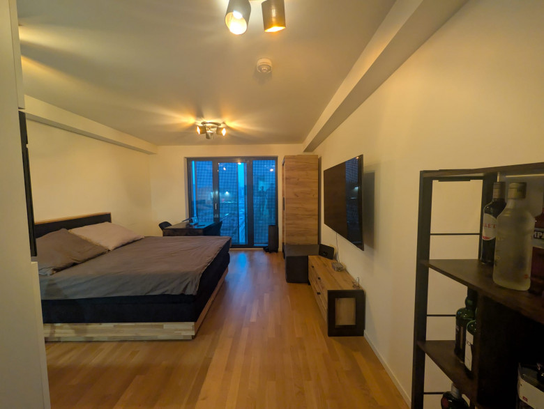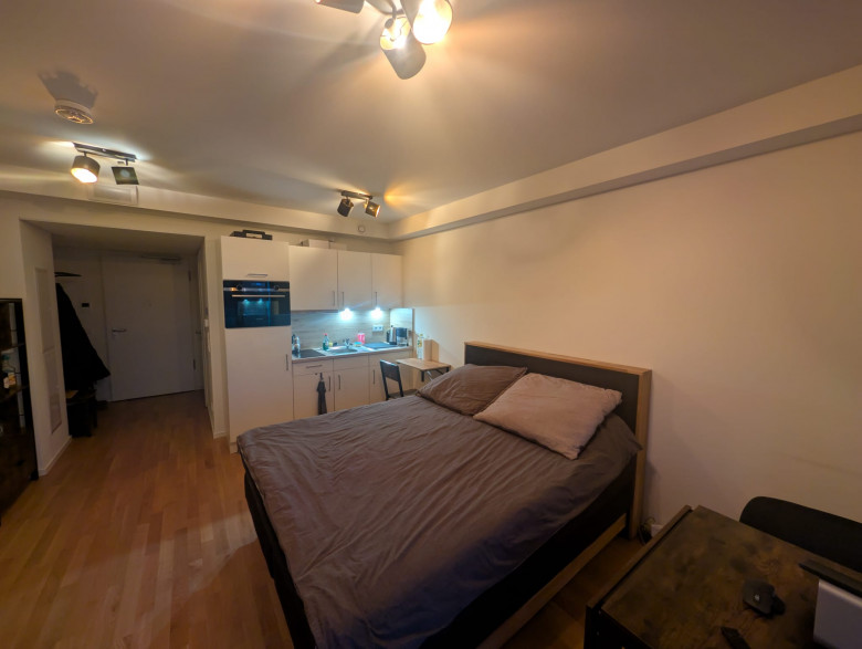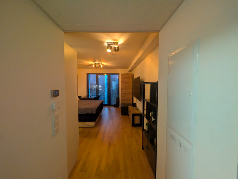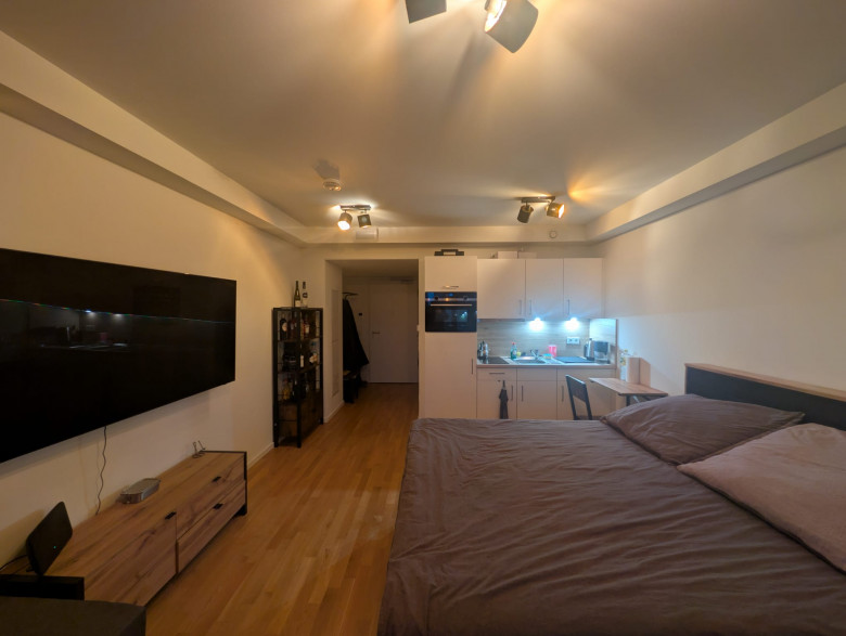 In diesem attraktiven Neubau bieten wir Ihnen dieses stilvolle Studio-Apartment an. Die Wohnung ist mit einem Parkettboden und einer Einbauküche mit Kühlschrank, Gefrierschrank, Herd und Backofen ausgestattet. Die raumhohen Fenster im Wohnzimmer und die angrenzenden Balkone machen die Wohnungen sehr hell und freundlich. Das Bad ist modern gefliest und die Dusche ist mit einer schönen, maßgefertigten Glasduschwand versehen.