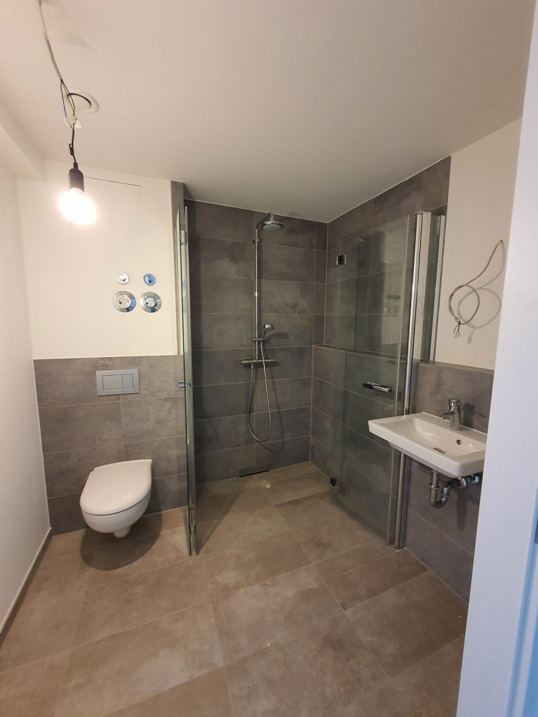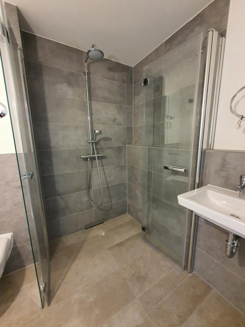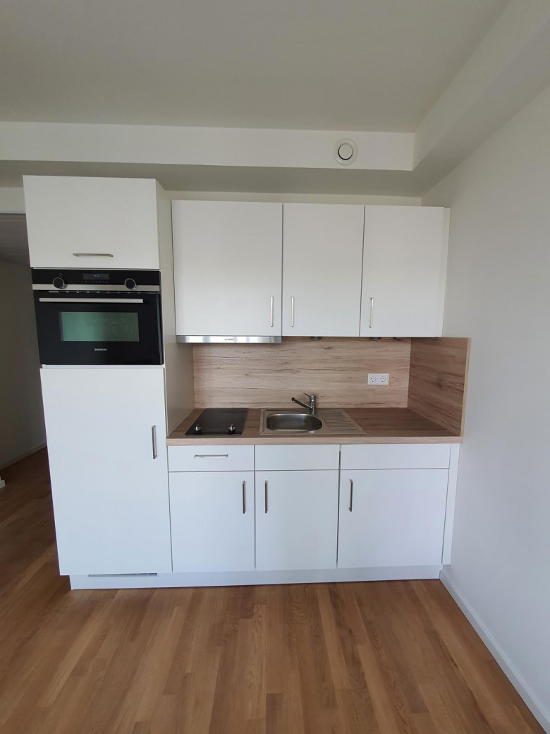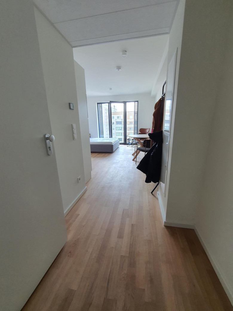 In diesem attraktiven Neubau bieten wir Ihnen dieses stilvolle Studio-Apartment an. Die Wohnung ist mit einem Parkettboden und einer Einbauküche mit Kühlschrank, Gefrierschrank, Herd und Backofen ausgestattet. Die raumhohen Fenster im Wohnzimmer und die angrenzenden Balkone machen die Wohnungen sehr hell und freundlich. Das Bad ist modern gefliest und die Dusche ist mit einer schönen, maßgefertigten Glasduschwand versehen.