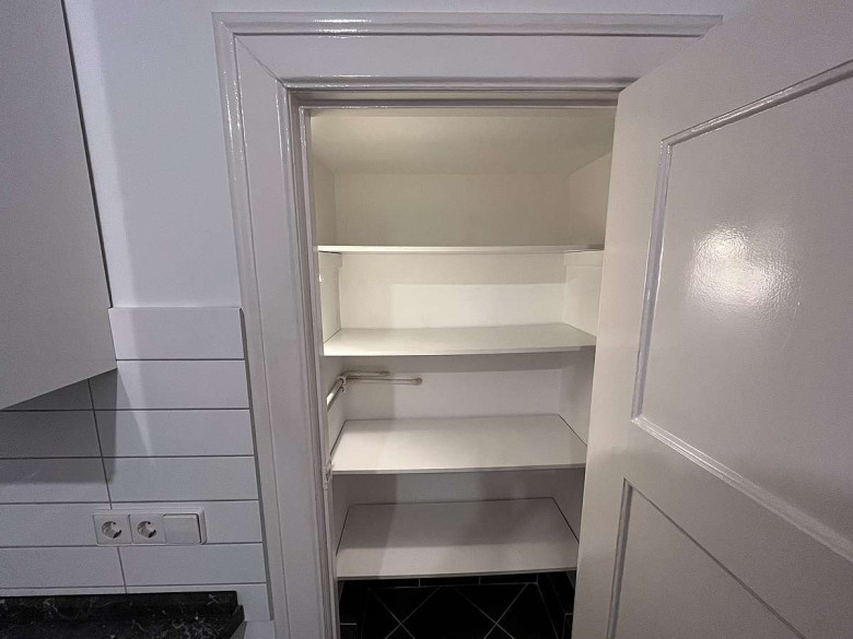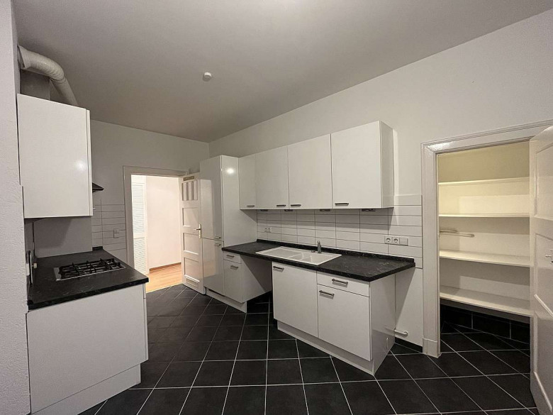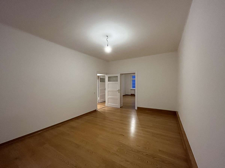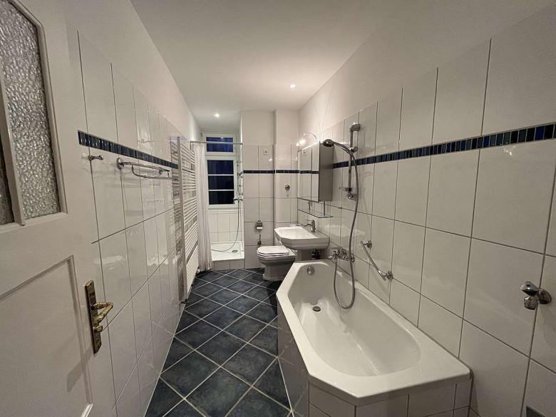 This attractive old building apartment is located on the third floor of an apartment complex in the direct vicinity of Kurfürstendamm. The spacious flat can be reached comfortably via the lift. After entering the apartment, you reach the hallway, which is equipped with a large built-in wardrobe. The kitchen, which is equipped with a high-quality fitted kitchen, is located on the opposite side. It also has an adjoining storage room. Next to the kitchen is the bathroom, which has a bathtub and a shower. Furthermore, the hallway leads to three separately accessible rooms, which create a beautiful atmosphere due to their high ceilings and multi-paned double-glazed windows. The large windows provide bright rooms and a beautiful view of the sunny inner courtyard. The flat also has a cellar room, which is available to the tenants.
