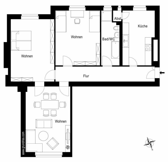 Die attraktive Altbauwohnung befindet sich in der dritten Etage eines Wohnkomplexes in der direkten Umgebung des Kurfürstendamms. Über den Aufzug kann man komfortabel die geräumige Wohnung erreichen. Nach Eintreten in die Wohnung gelangt man in den Flur, welcher mit einem großen Einbauschrank ausgestattet ist. Gegenüber geht die Küche, die mit einer hochwertigen Einbauküche ausgestattet ist, ab. Sie verfügt außerdem über eine angrenzende Speisekammer. Neben der Küche befindet sich das Badezimmer, welches über eine Badewanne und eine Dusche verfügt. Des Weiteren gelangt man von dem Flur in drei separat begehbare Zimmer, welche durch hohe Decken, sowie mehrflügelige Doppelkastenfenster eine schöne Atmosphäre ausstrahlen. Die großen Fenster sorgen für helle Räume und einen wunderschönen Ausblick in den sonnigen Innenhof. Zu der Wohnung gehört auch ein Kellerraum, welcher den Mietern zur Verfügung steht.