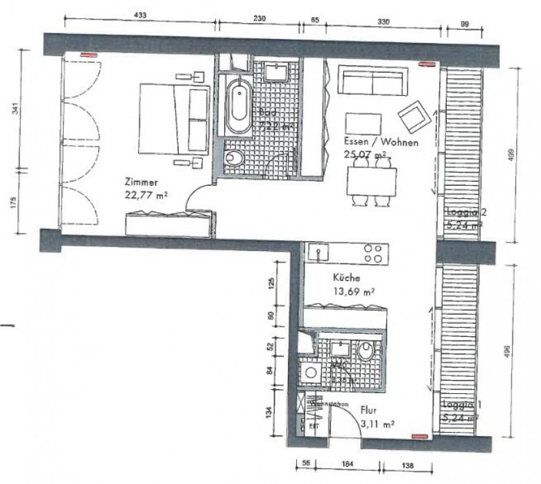 Hier finden Sie eine großflächige und moderne 2-Zimmerwohnung.