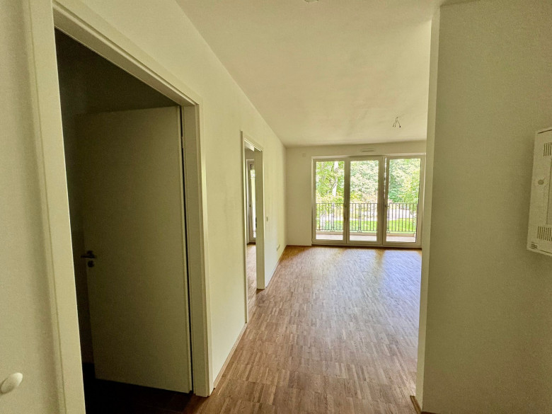 Gleich hinter dem Haus befindet sich der Fritz-Schloß-Park, der bei schönem Wetter dazu einlädt, gemütlich picknicken oder spazieren zu gehen. Die Wohnung befindet sich in einem Neubau mit Fahrstuhl, Keller und ist mit einer Einbauküche ausgestattet, die einen Kühlschrank, Tiefkühler, Geschirrspüler, Herd und Ofen beinhaltet. Alle Zimmer sind mit einem schönen Parkettboden und Fußbodenheizung versehen. Das Badezimmer ist komplett gefliest und verfügt über eine Dusche mit einer (maßgefertigten) Duschwand.