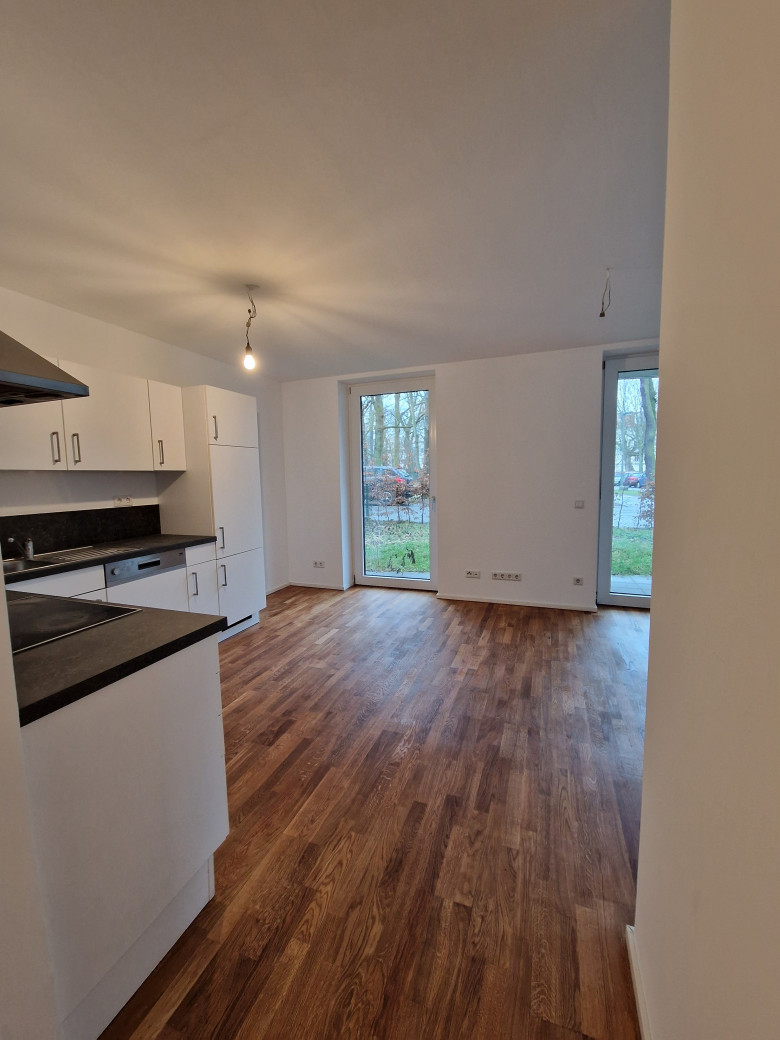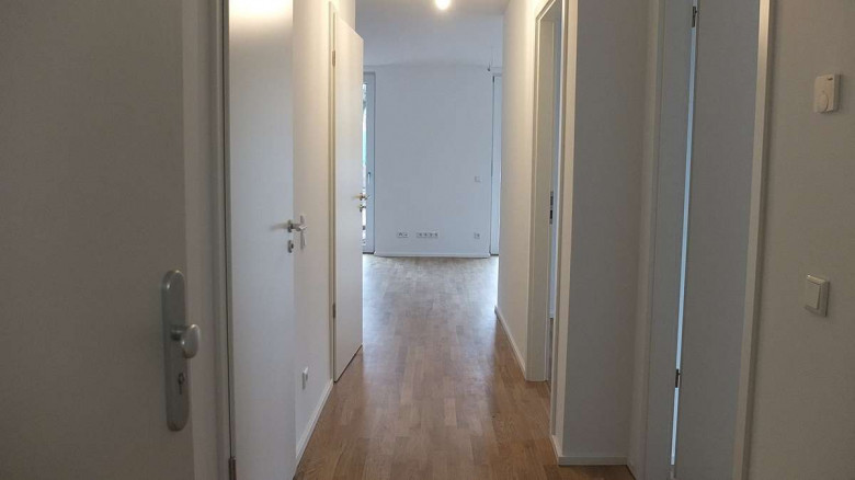 The offered apartment is located on the ground floor of a new construction project directly at Tierpark. It convinces with a generous cut and sophisticated equipment. There is also a high quality fitted kitchen and a bathroom with a walk-in shower. The unit has a terrace, which is accessible from the bedroom and the kitchen, and a garden. Is a barrier-free apartment and offers a bicycle and stroller storage room in the basement. In addition, there are 10 outdoor bicycle parking spaces available.