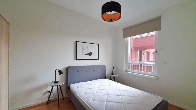 Die Wohnung befindet sich in einem neu errichteten Gebäude und beinhaltet einen Concierge Service, Fahrstuhl und Keller und ist mit modernen Möbeln ausgestattet, d.h. einer Einbauküche mit Kühlschrank und Tiefkühler, Geschirrspüler, Herd und Ofen.