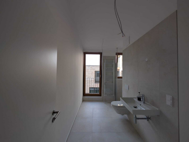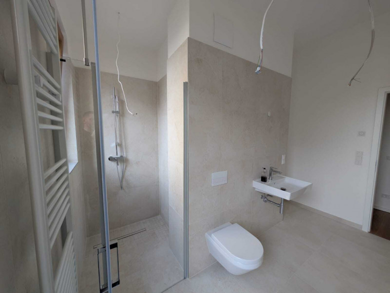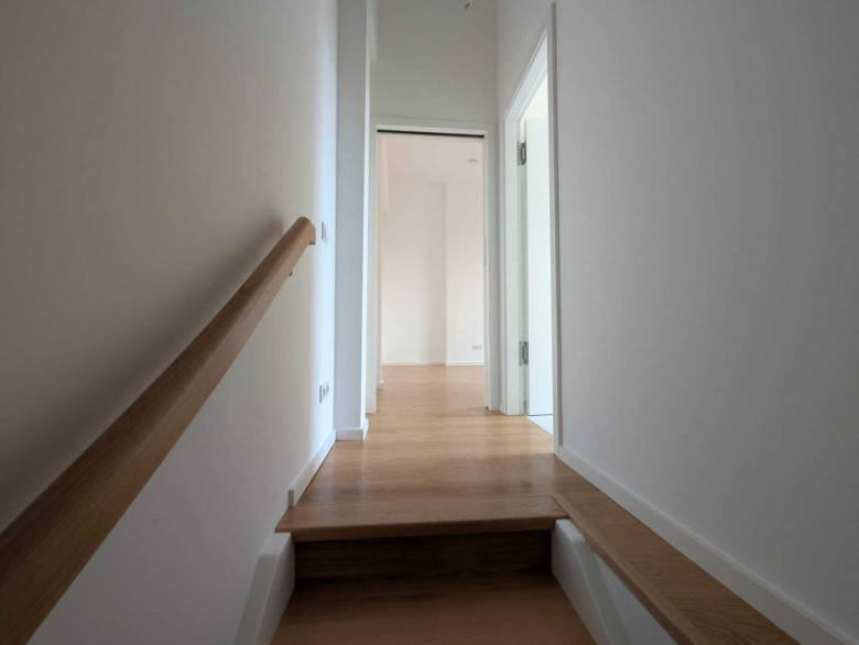 This unique maisonette is perfect for those seeking something special and who value a clear separation between living and sleeping areas! On the entrance level (Ground Floor), you will find the heart of the apartment: a spacious open-plan kitchen and living area that invites communal cooking and lingering. A practical guest toilet completes this level. Via the internal staircase, you reach the First Floor, your private retreat. Here is the quiet bedroom and the modern main bathroom. A special highlight is the ground-level (walk-in) shower, which ensures maximum comfort. The exceptional feature: A second staircase leads you directly from the apartment to your own, private cellar (basement), which offers plenty of additional storage space. Two internal staircases connect the three levels and create a spacious, vertical living experience – all within the high-quality new build standard of the Parrisiusstraße 35 project.